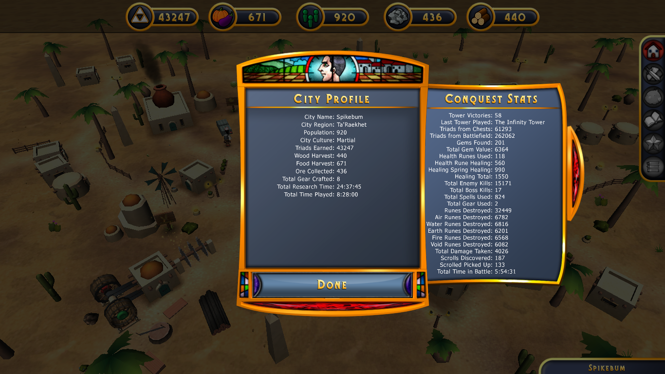 I also beat level 50 on normal on my first attempt with a gold flag. The boss should have more health at the very least. Perhaps the ability to lock a block of tiles or something (there's already an "attack" that lends itself to that). And/or more minions.You can see my city's profile information here: http://www.scrobot.com/images/reignmaker_spikebum_0.png